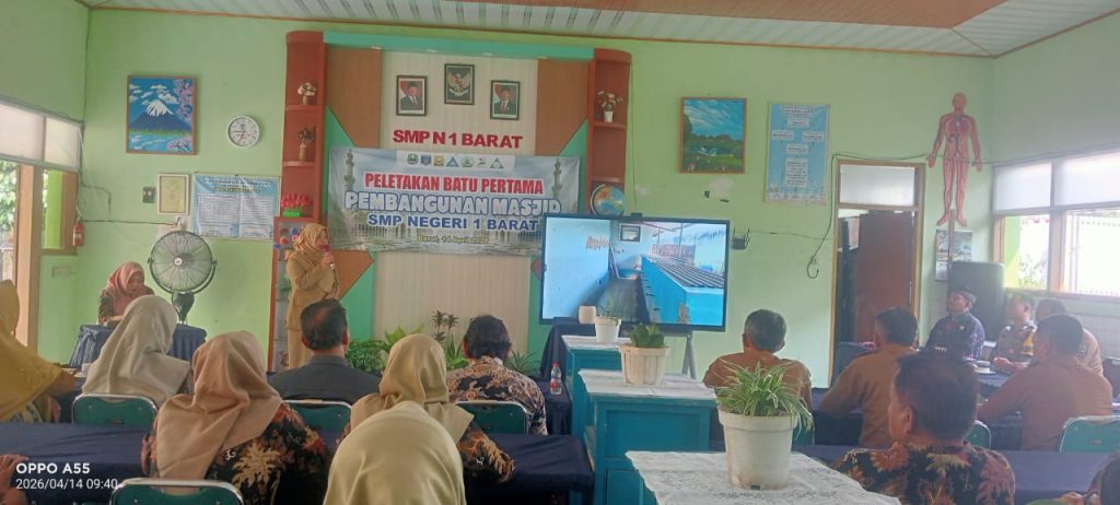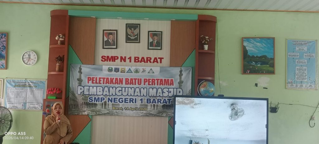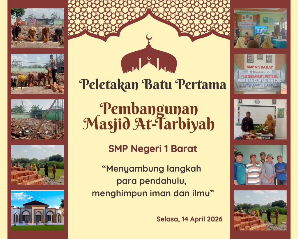 SMP Negeri 1 Barat menggelar kegiatan Peletakan Batu Pertama Pembangunan Masjid At-Tarbiyah yang bertajuk “Menyambung Langkah Pendahulu, Menghimpun Iman dan Ilmu.” Kegiatan acara sakral dan penuh khidmat itu diselenggarakan pada Selasa, 14 April 2026.