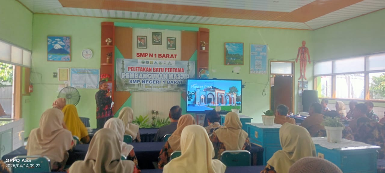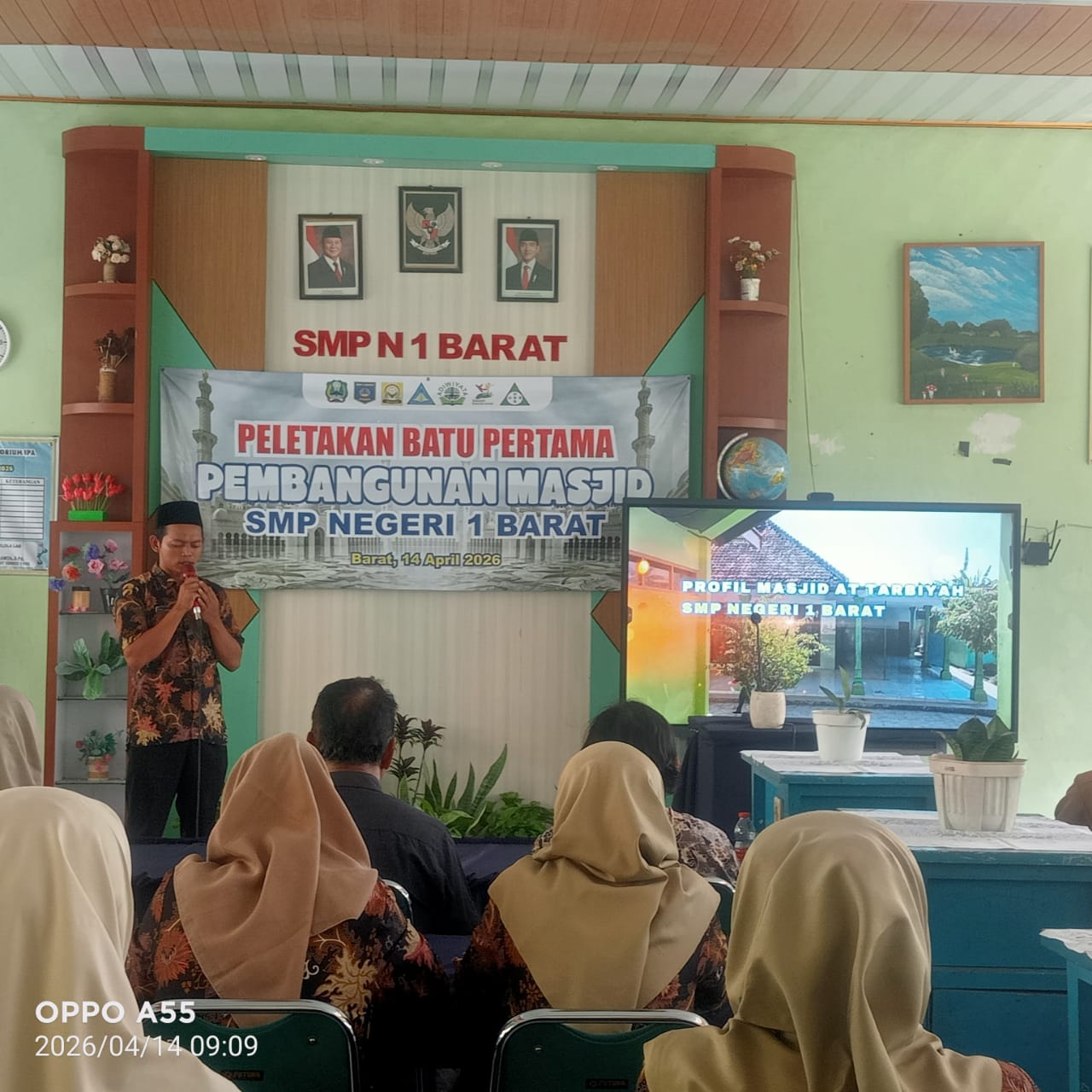 Rencana dan upaya itu terwujud pada saat ini, ketika Bapak Seno, M.Pd. sebagai kepala SMP Negeri 1 Barat. Mengawali kegiatan ini, pada tanggal 2 April 2026 digelar pembongkaran masjid. Acara yang diawali dengan doa bersama itu berlangsung sehari setelah SMP Negeri 1 Barat berulang tahun ke-48 (1 April 1978).